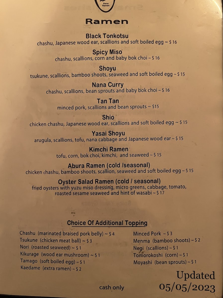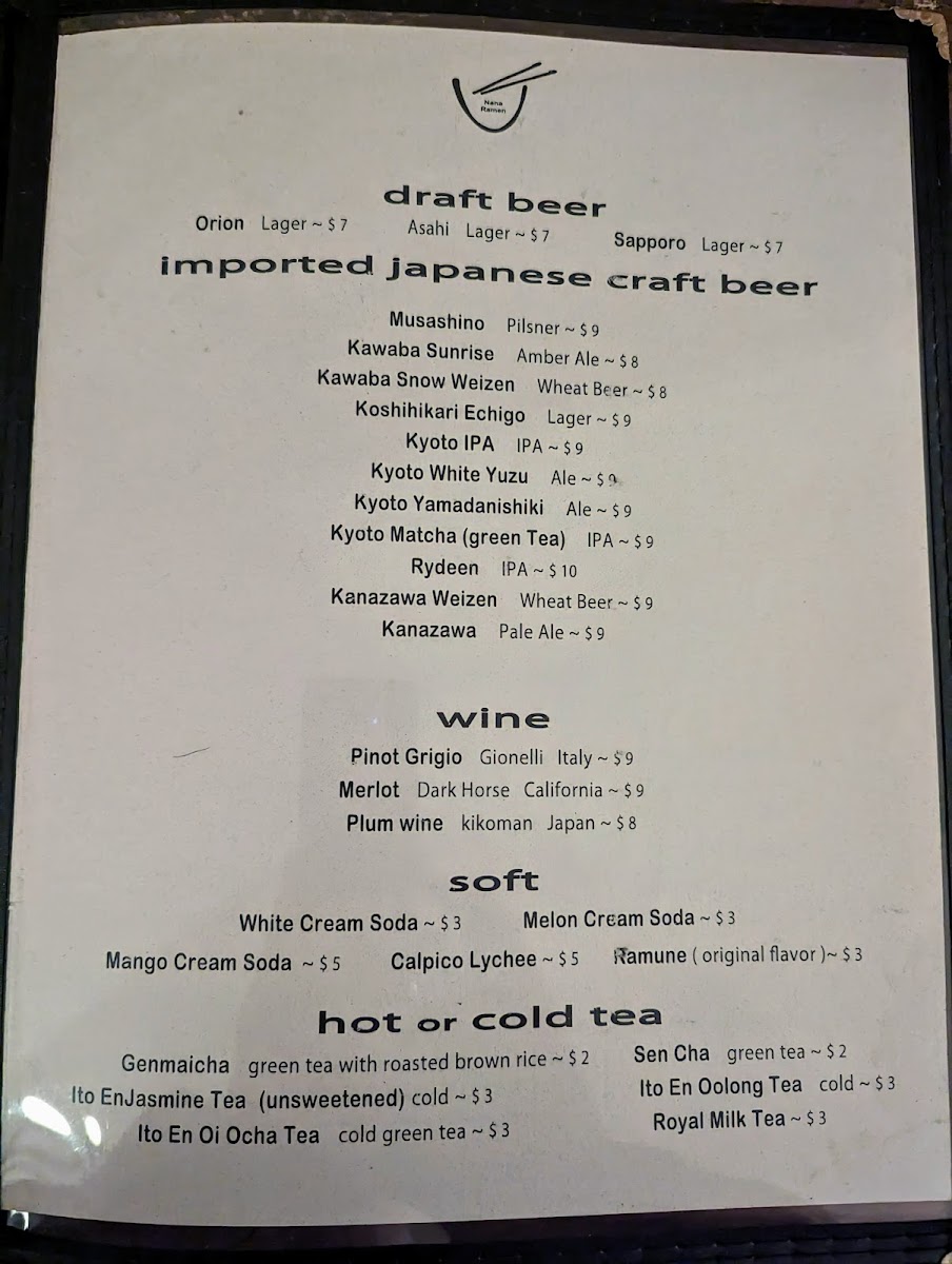 Customers echo similar sentiments, highlighting the friendly staff, like Irin, whose warm service enhances the dining experience. Whether it’s a delicious bowl of Seafood Ramen on a rainy day or a casual evening with a few drinks and Takoyaki, Nana Ramen promises a dining adventure that ticks all the boxes for authenticity, flavor, and warmth.